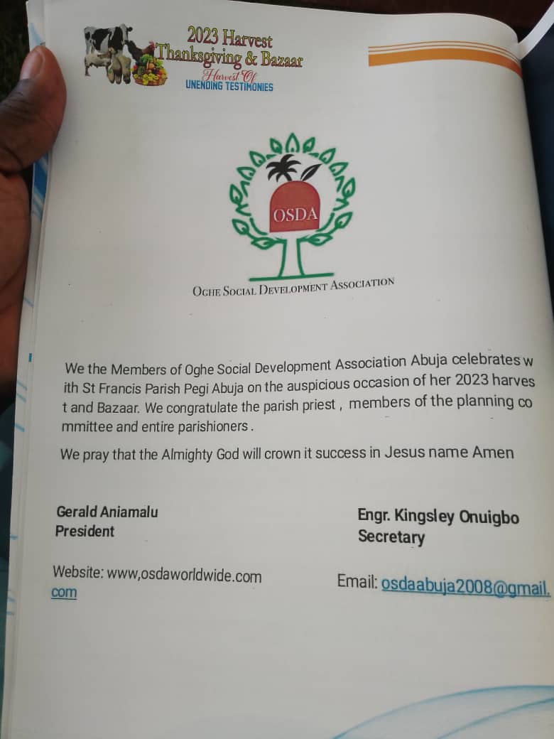Photo Gallery NNE NKE-OKWUKWE COTTAGE HOSPITAL AMANKWO OGHE OUR OVERSIGHT VISIT AT THE HOSPITAL OUR OVERSIGHT VISIT AT THE HOSPITAL SCHOLARSHIP LAUNCH AT CIVIC CENTER AKAMA VISIT TO OUR NATIONAL ASSEMBLY REPRESENTATIVE SENATOR OSITA NGWU, LED BY THE PRESIDENT MR GERALD ANIAMALU , MEMBERS OF THE BOT AND EXECUTIVES VISIT TO OUR NATIONAL ASSEMBLY REPRESENTATIVE RT. HON SUNDAY UMEHEA, LED BY THE PRESIDENT MR GERALD ANIAMALU , MEMBERS OF THE BOT AND EXECUTIVES OUR KUJE PROPERTY INSPECTION AND FENCING END OF YEAR PARTY OUR VISIT TO ORPHANAGE HOMES OUR ANNUAL HARVEST AND BAZZAR THANKSGIVING AT ST FRANCIS CATHOLIC CHURCH PEGI -KUJE ABUJA ENUGU DAY 2024 ACTIVITIES AND OSDA AWARD ENUGU DAY 2024 ACTIVITIES AND OSDA AWARD VISIT TO OUR SISTER CHIEF ANTHONIA NWANKWO (NEE NWAFOR) DEPUTY COMPTROLLER OF CUSTOMS